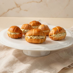 Suaves y hojaldrados mini croissants rellenos con una mezcla cremosa de pollo. (100 UND)